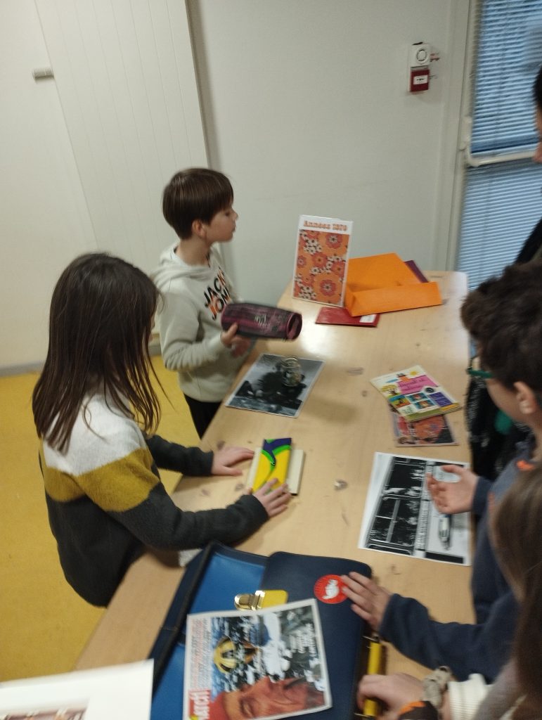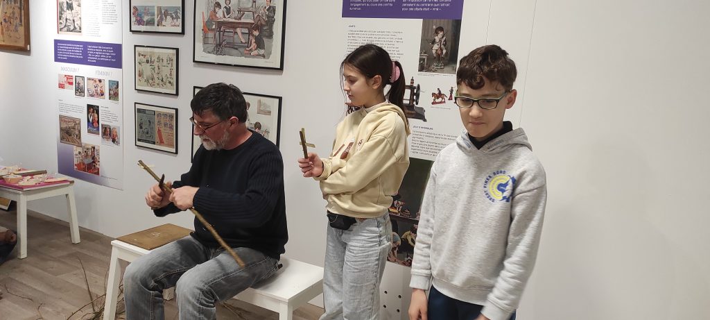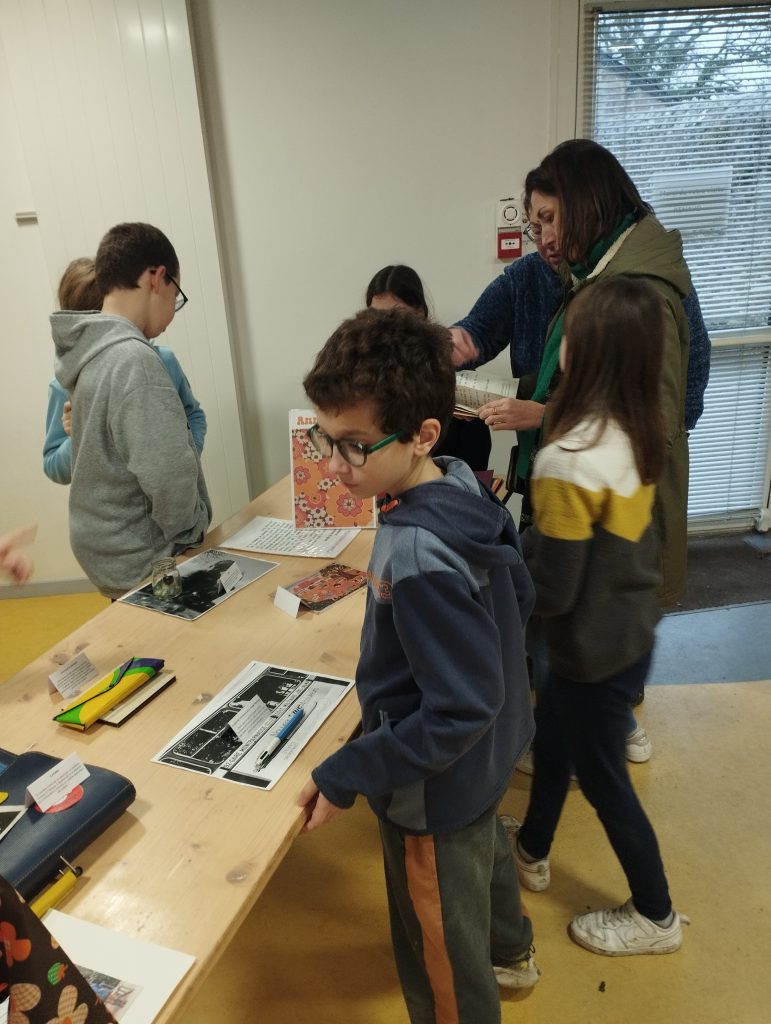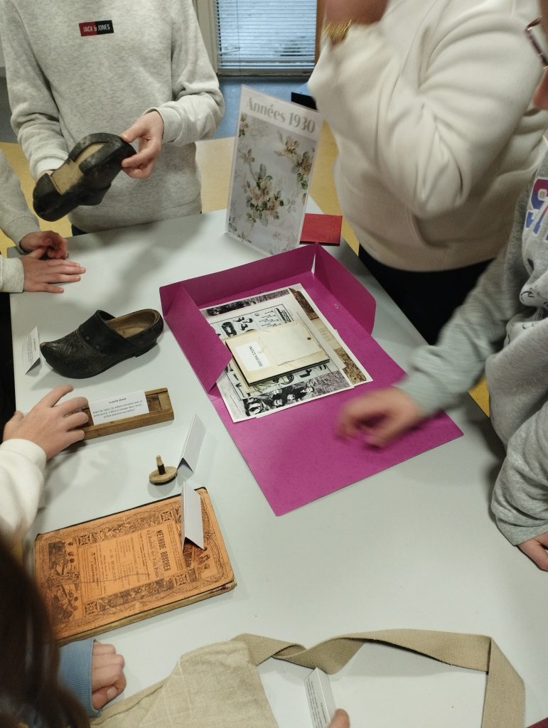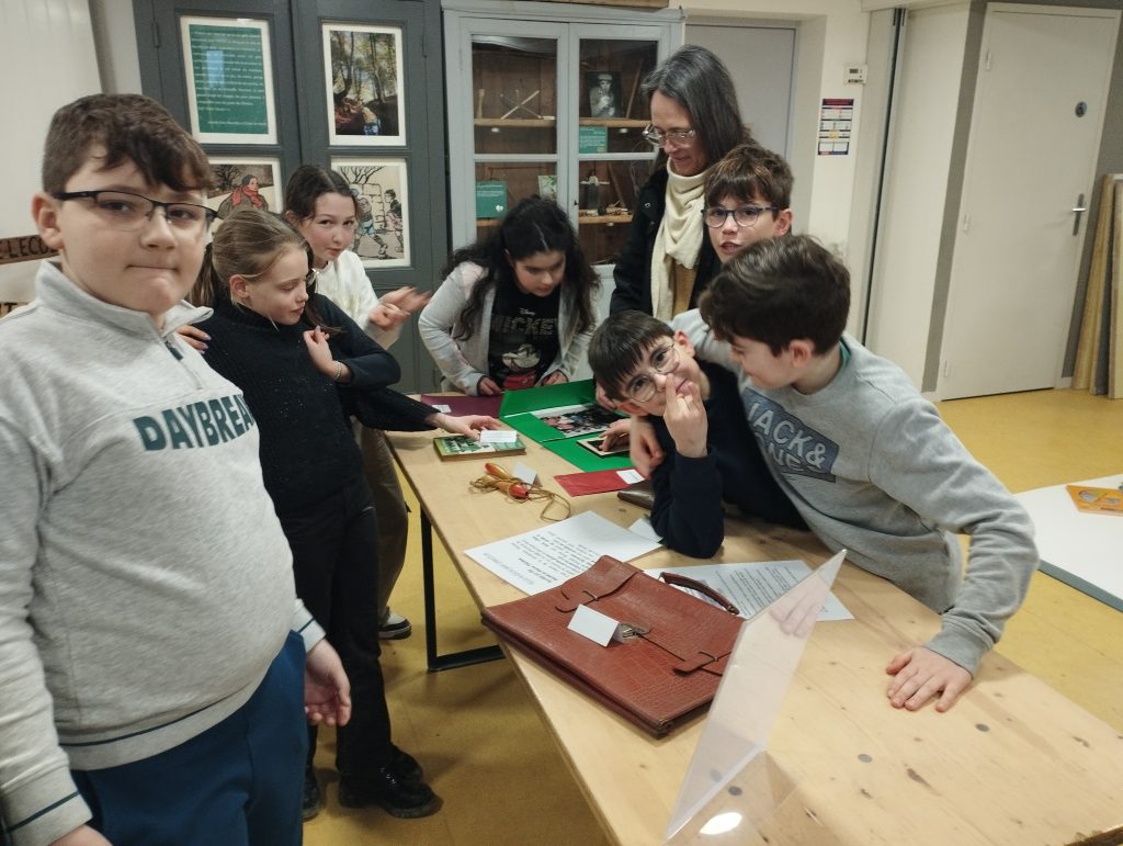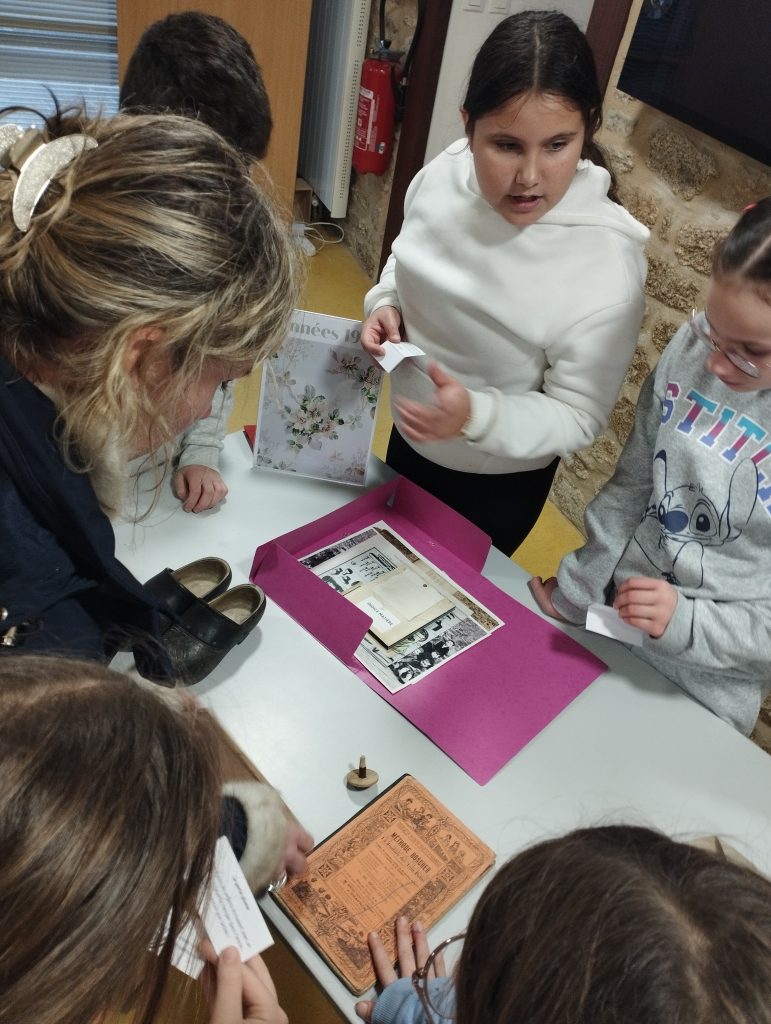 L’après-midi a été consacré à deux ateliers. Le premier a permis aux élèves de découvrir comment étaient fabriqués les jouets des écoliers d’autrefois, souvent simples mais ingénieux. Le second atelier les a amenés à classer les outils utilisés par les écoliers entre les années 1930 et 1980, mettant en évidence l’évolution du matériel scolaire au fil des décennies.