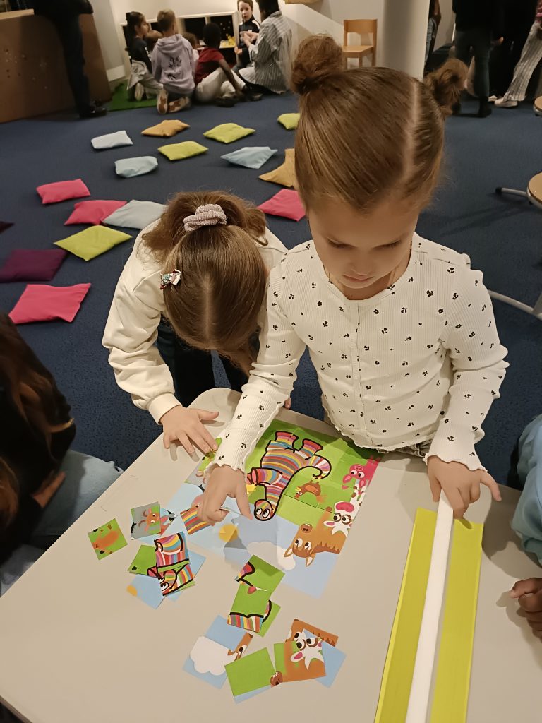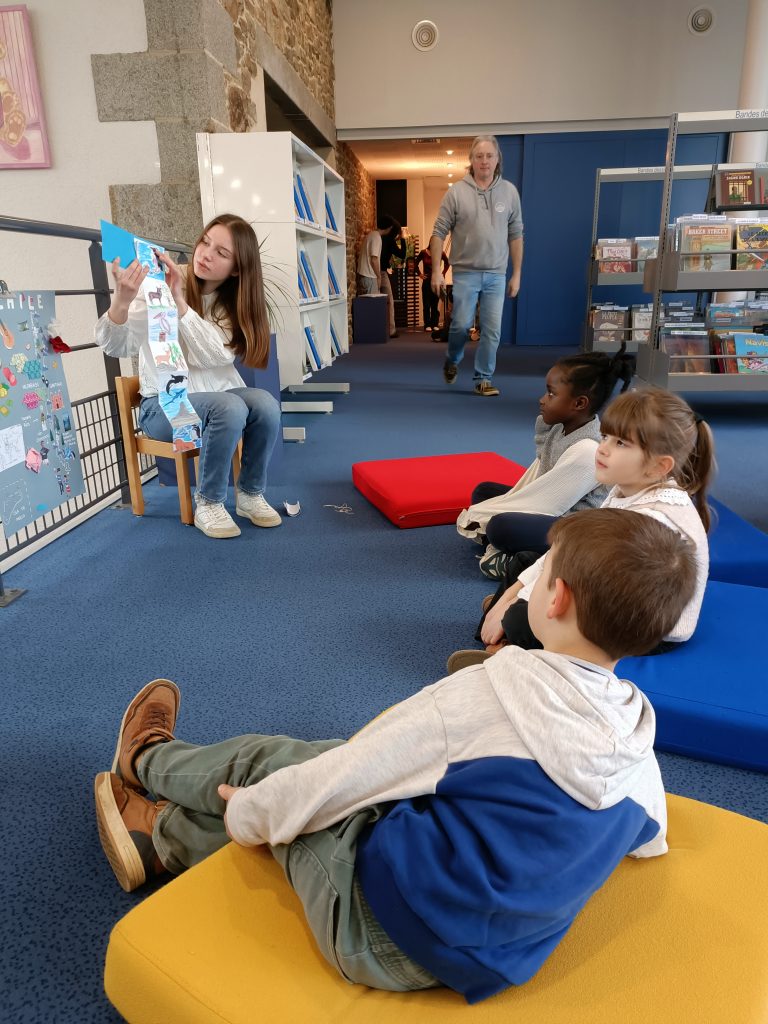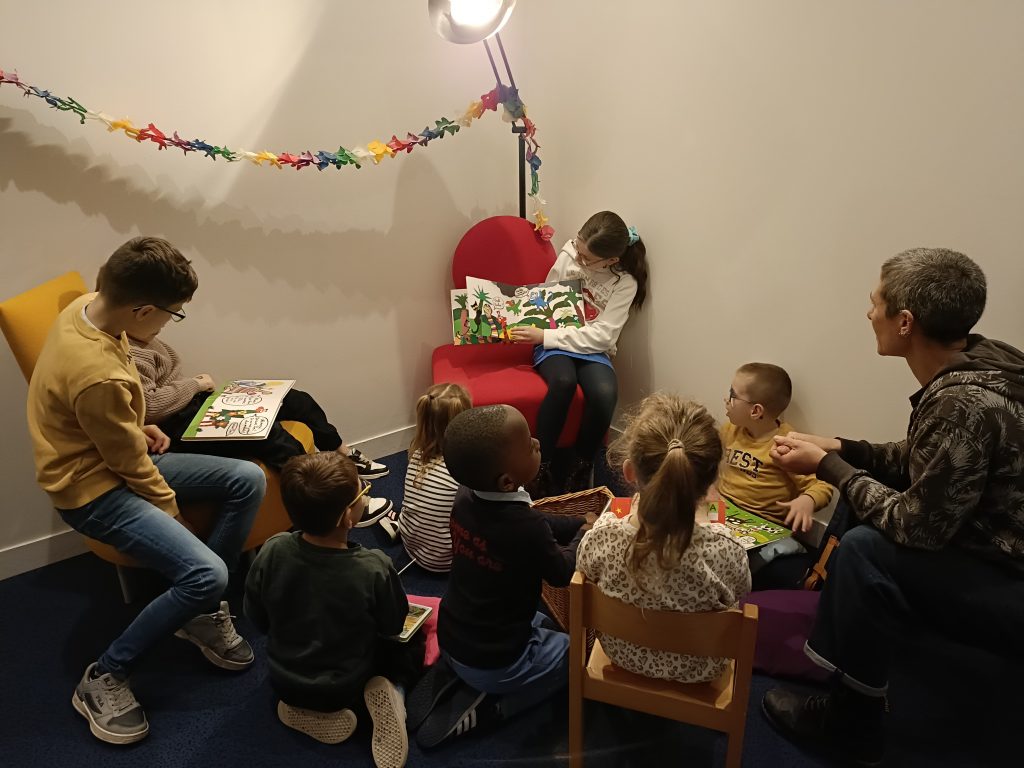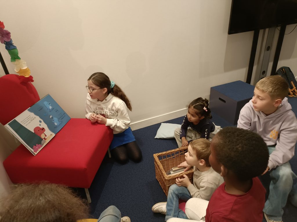 Régulièrement, nous nous rendons à la bibliothèque pour découvrir de nouvelles histoires, de nouveaux auteurs et illustrateurs ou encore participer à des ateliers.