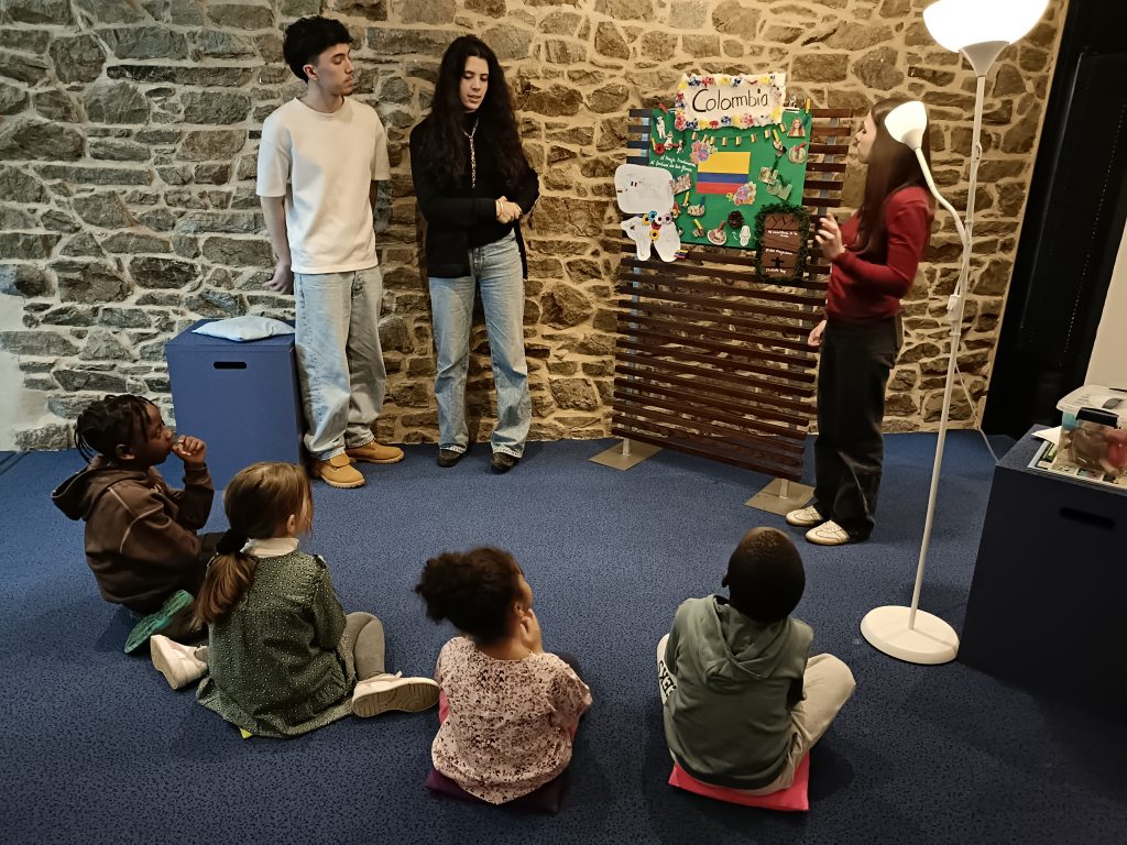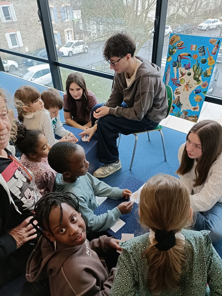 Ce jour-là, grâce aux élèves de première du Lycée Henri Avril, nous avons découvert l’espagnol. Grâce à des jeux qu’ils nous avaient préparés, ils nous ont appris quelques mots en espagnol et présenté les pays où l’on parle cette langue. Ils nous ont également raconté des légendes extraordinaires et appris des danses.
