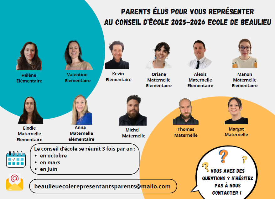 Nous savons que chaque parent a des questions, des suggestions ou des préoccupations concernant la vie de l’école. Que ce soit sur les activités scolaires, les projets en cours ou les événements à venir, nous sommes là pour vous écouter et transmettre vos préoccupations.